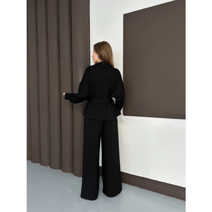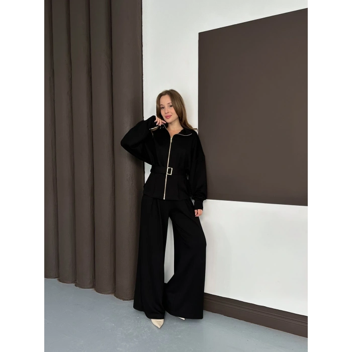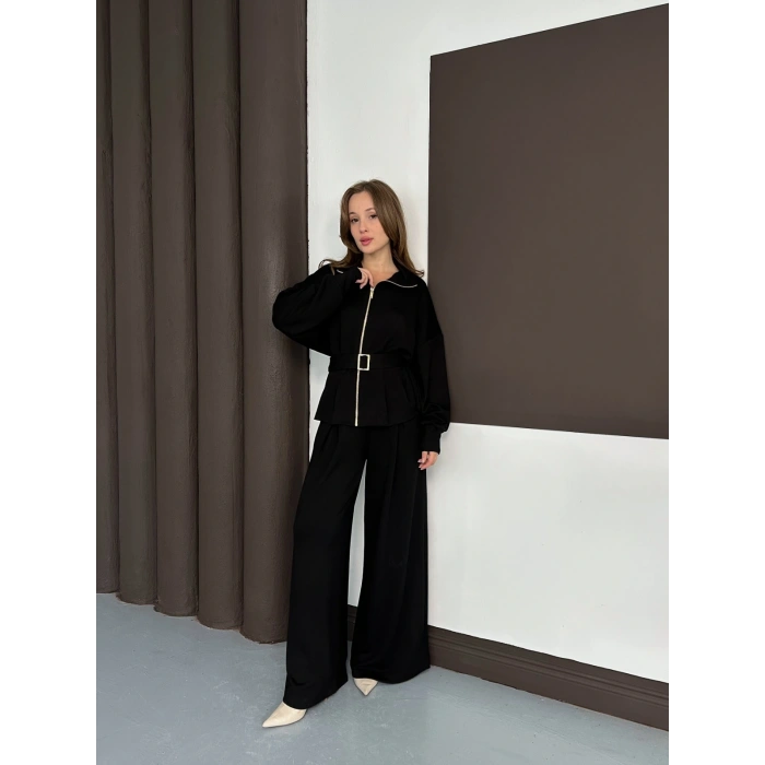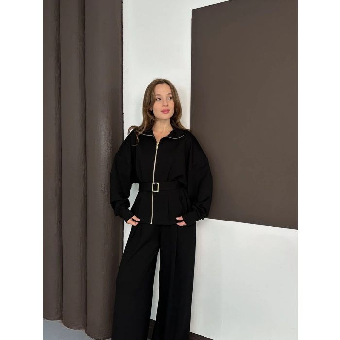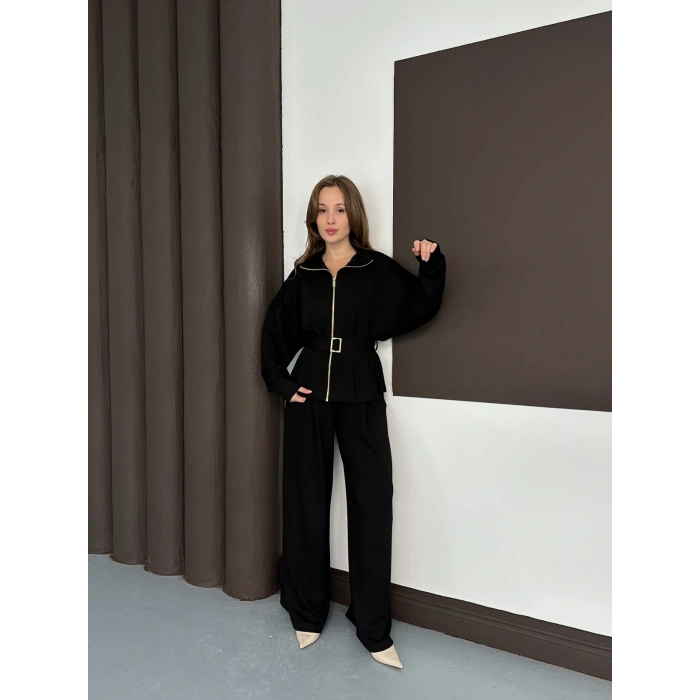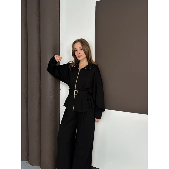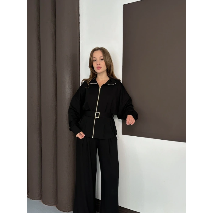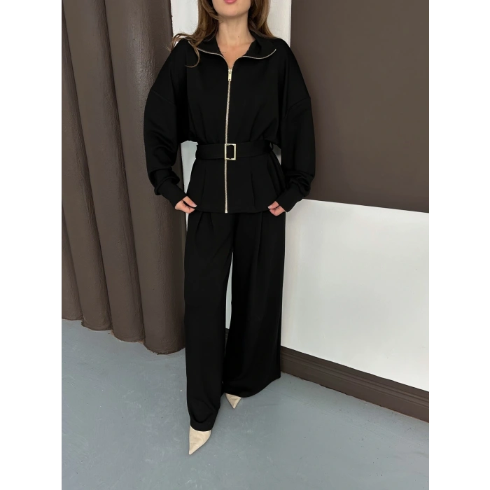 Fermuarlı Kemer Detaylı İkili Takım Siyah