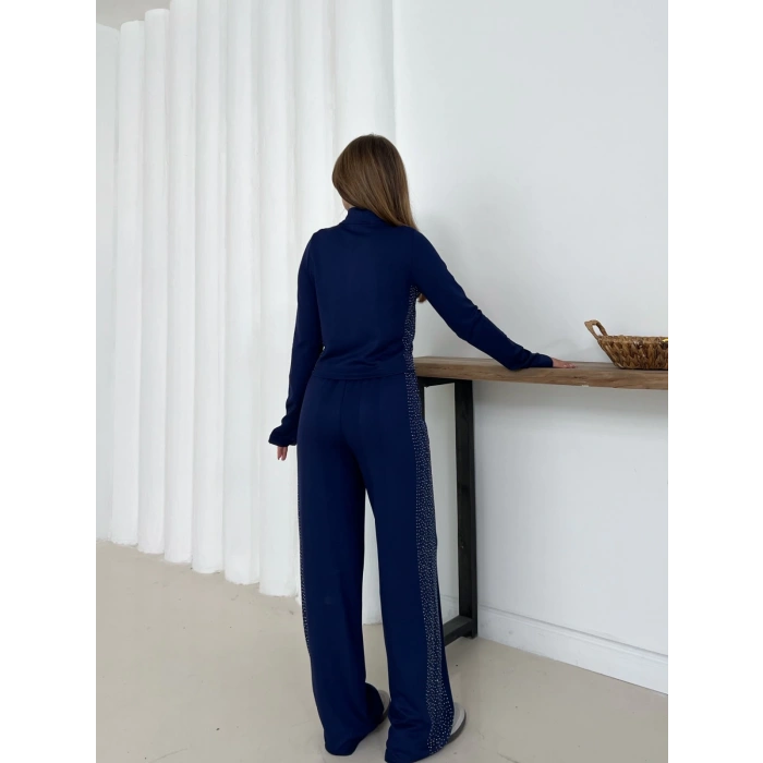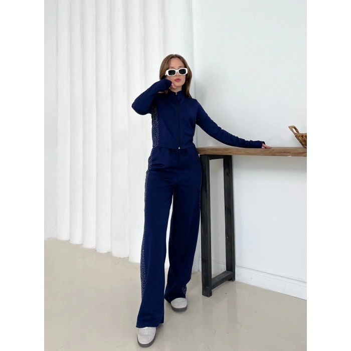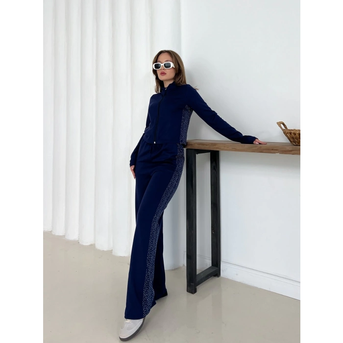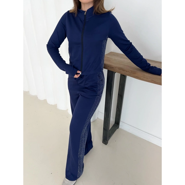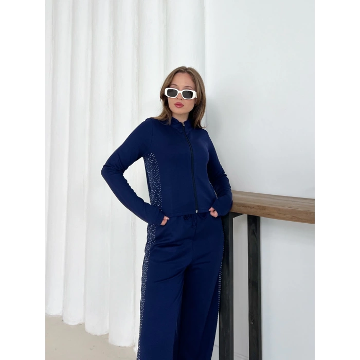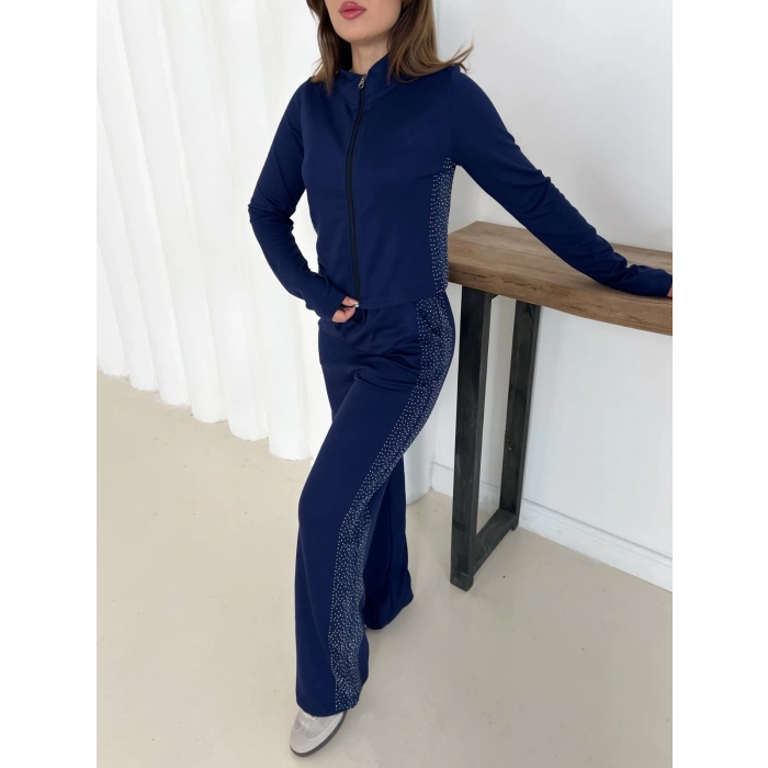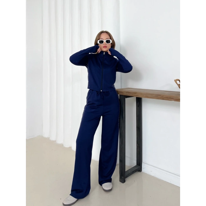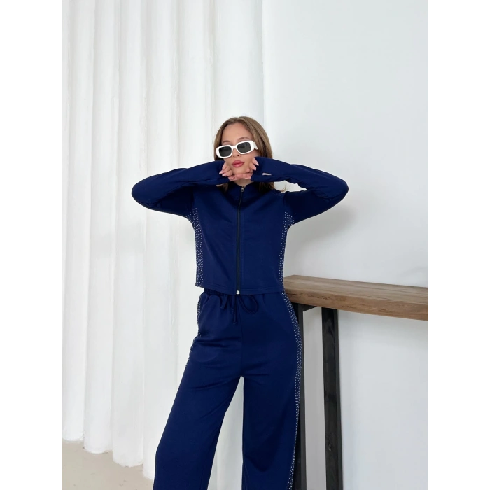 Fermuarlı Taş İşleme Detaylı Takım Lacivert