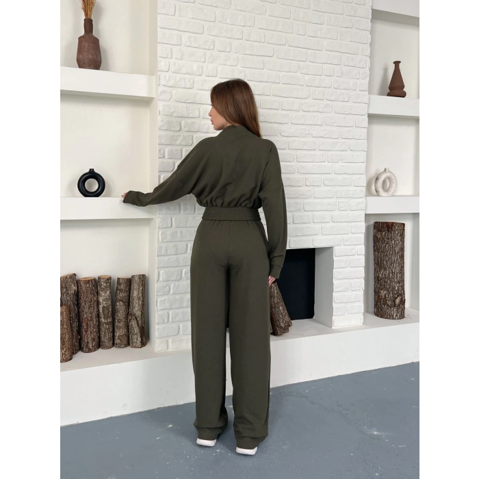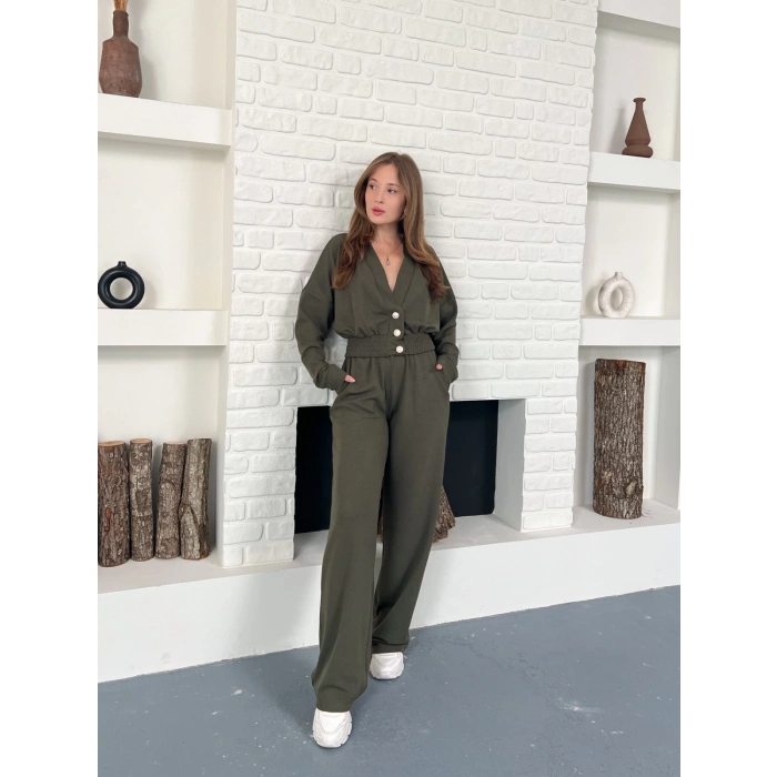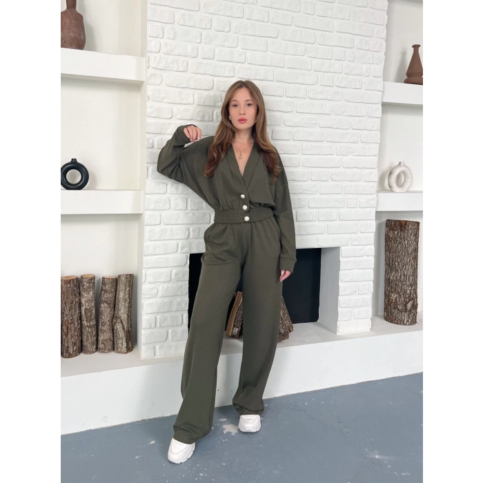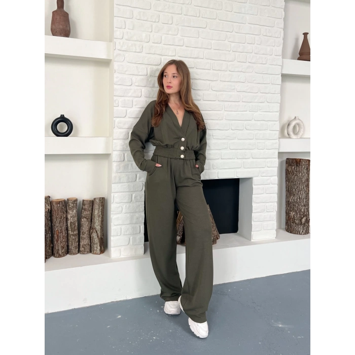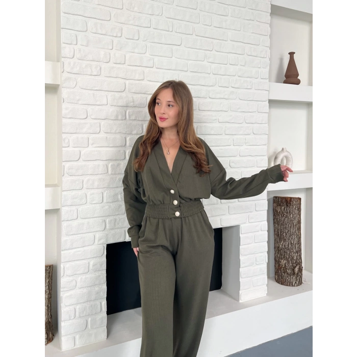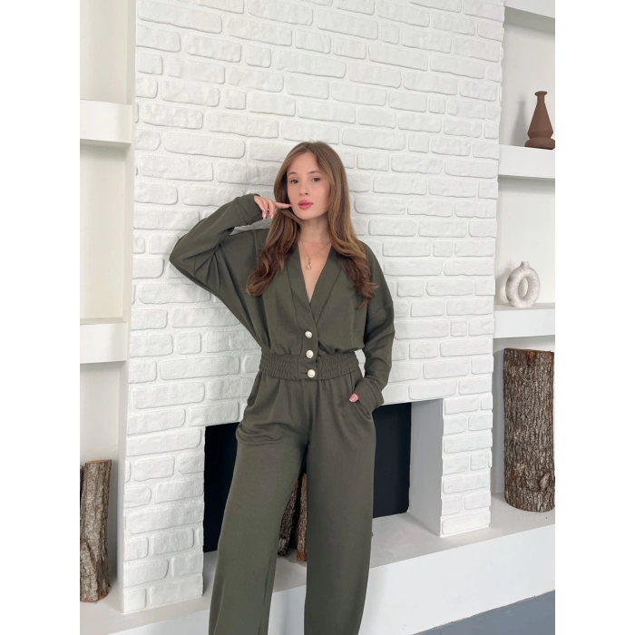 İri Düğme Detaylı Dekolte Takım Yeşil