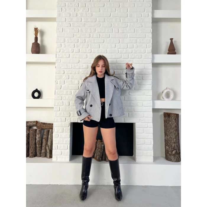 Kısa Street Luxe Kaşe Kaban Gri