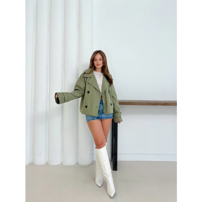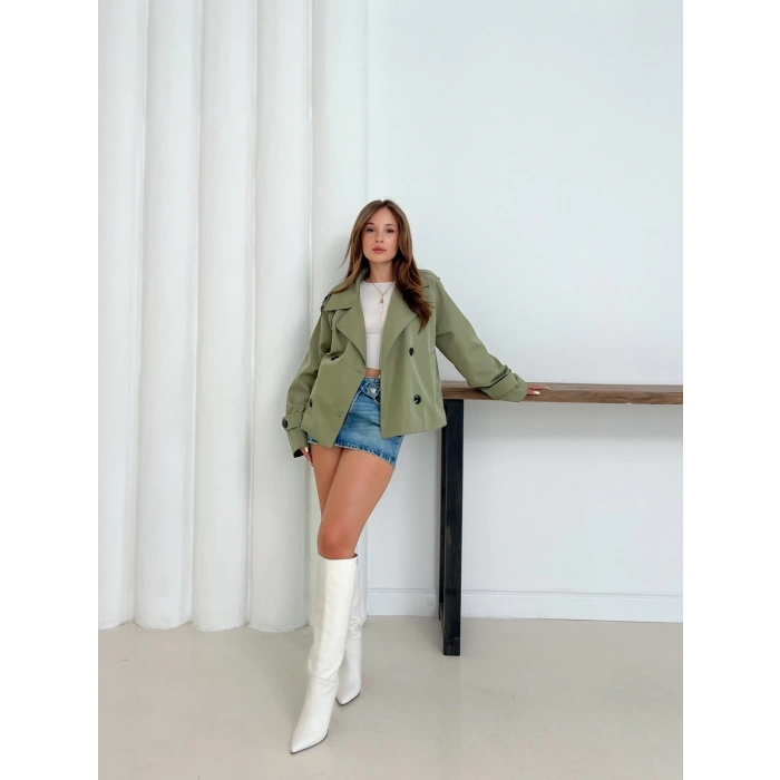 Kruvaze Yaka Cepli Bomber Ceket Haki