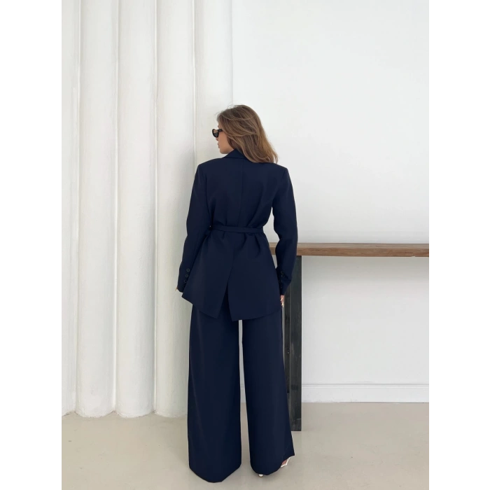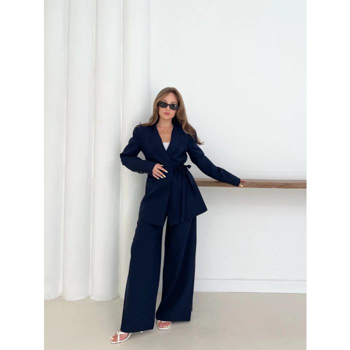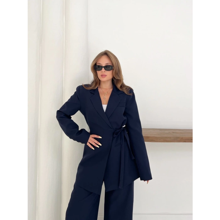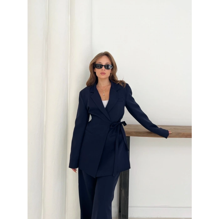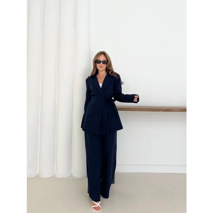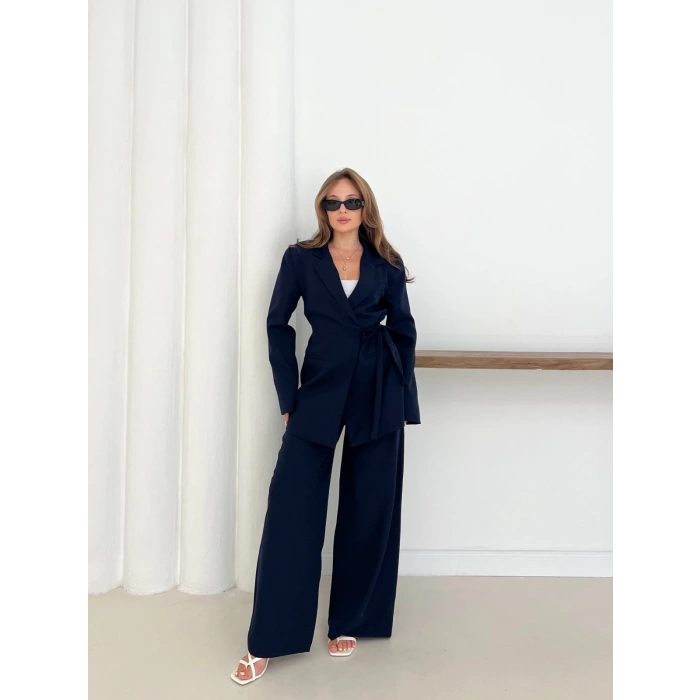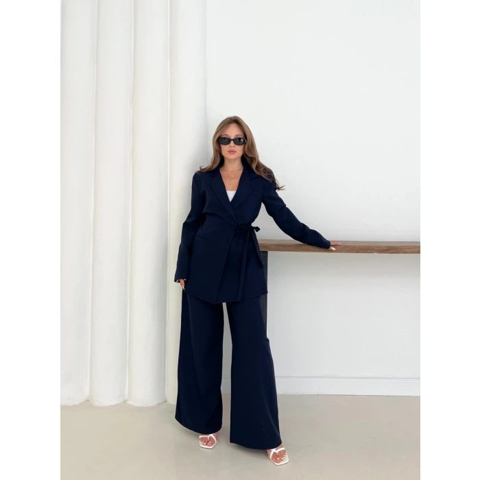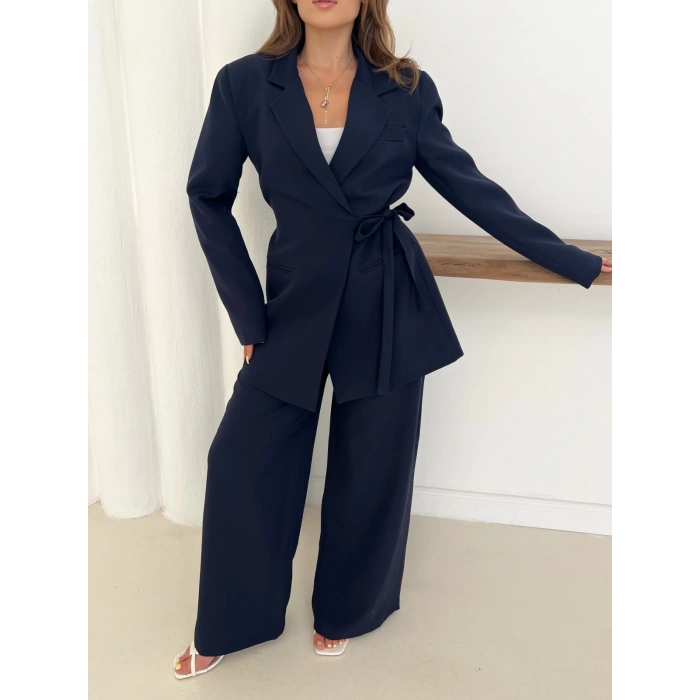 Kruvaze Yaka Yan Bağlama Detay Takım Lacivert