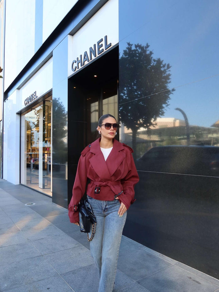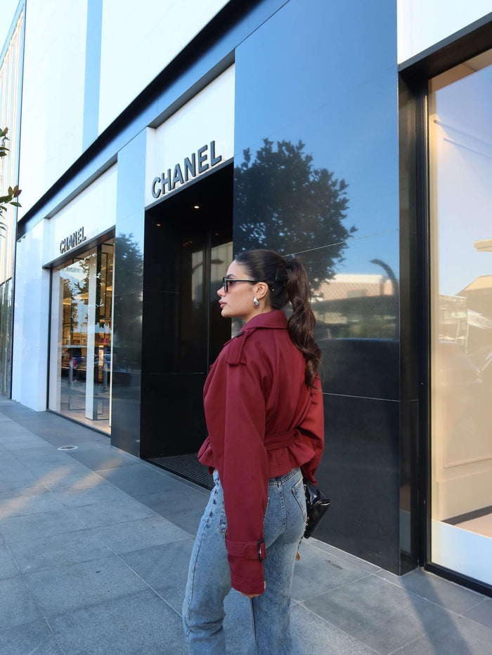 Kuşaklı Kısa Trench Bordo