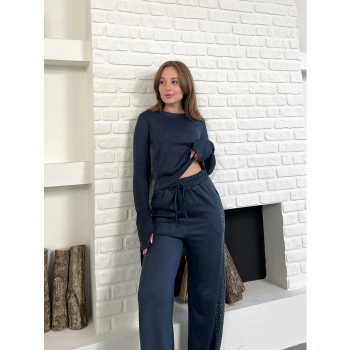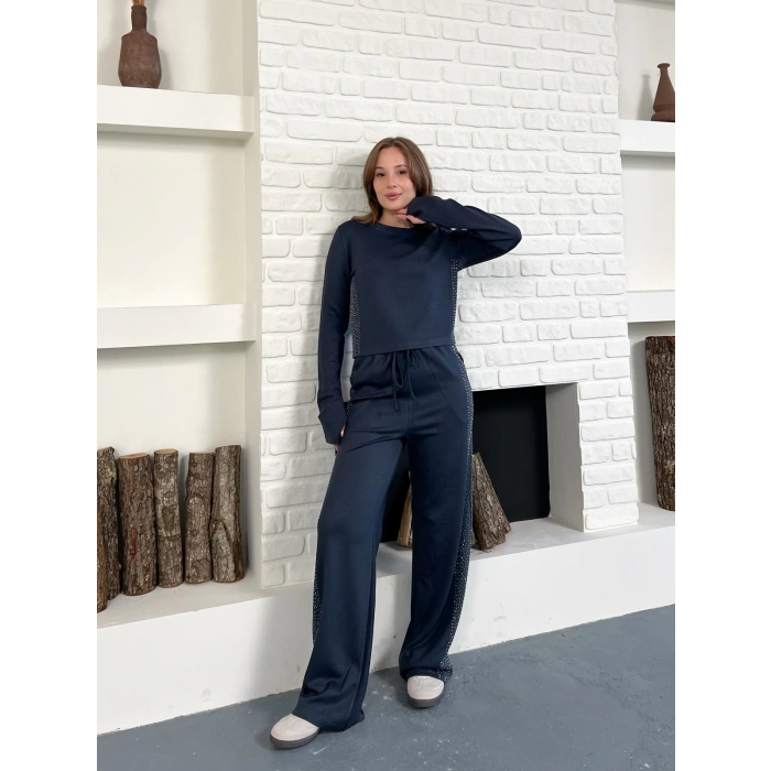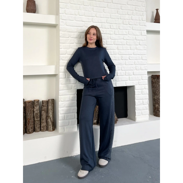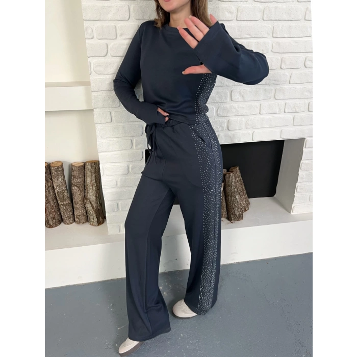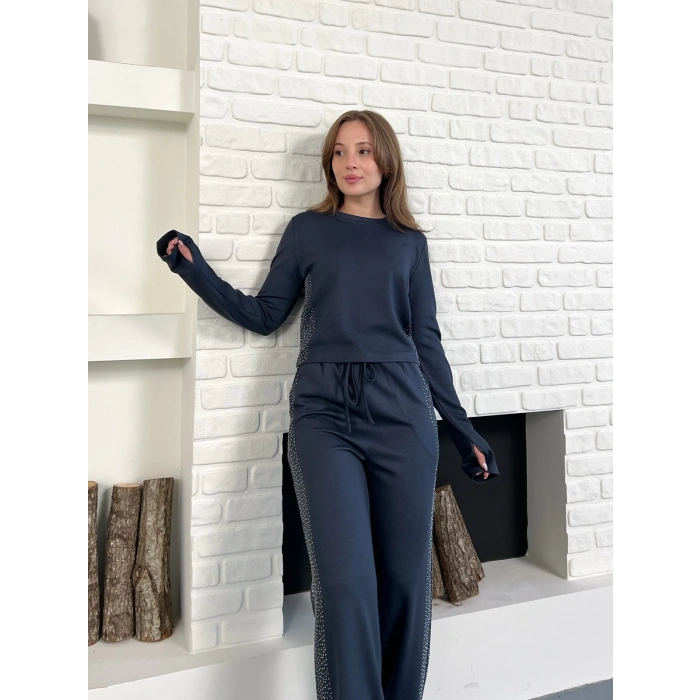 Modal Kumaş Taş Detay Takım Antrasit