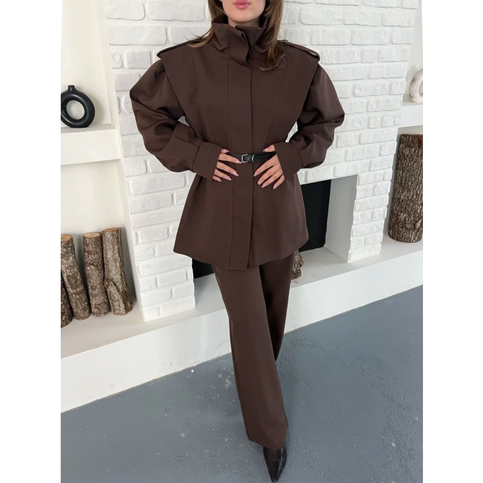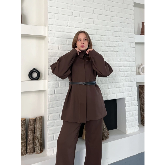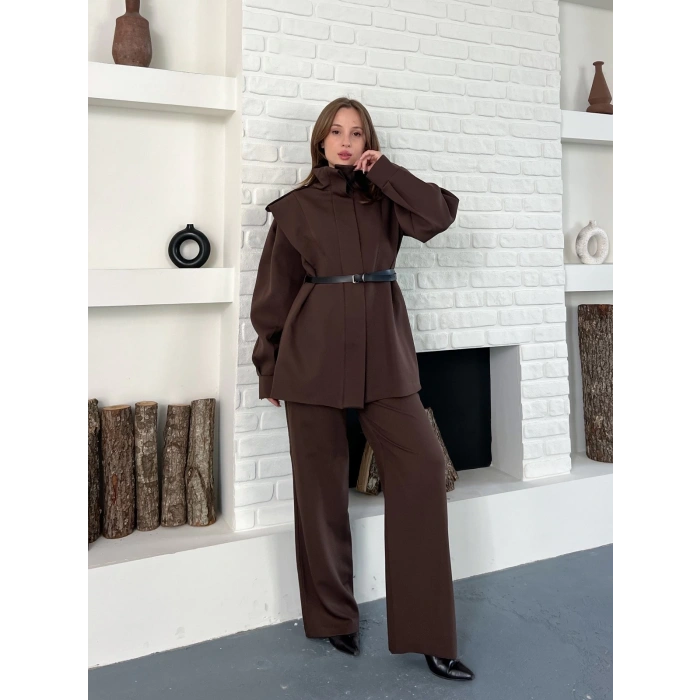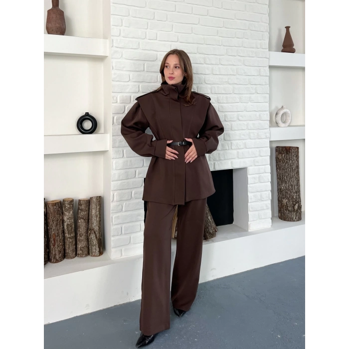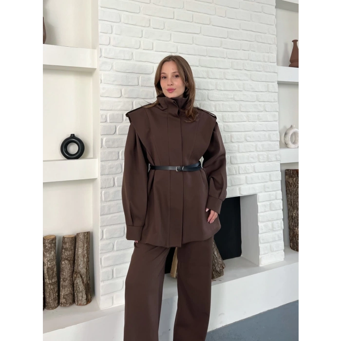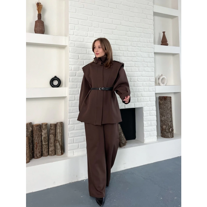 Omuz Vatkalı Kemerli İki Takım Kahve