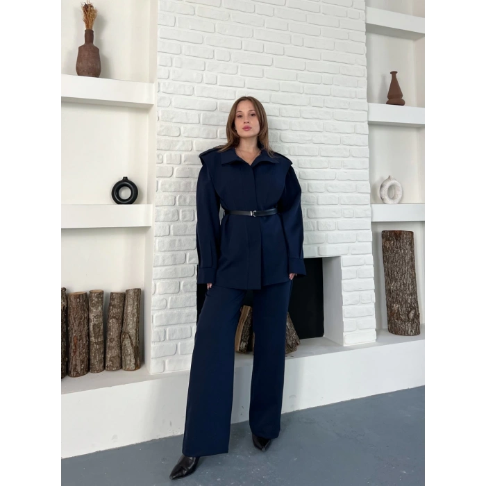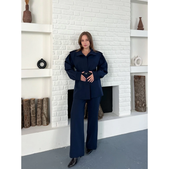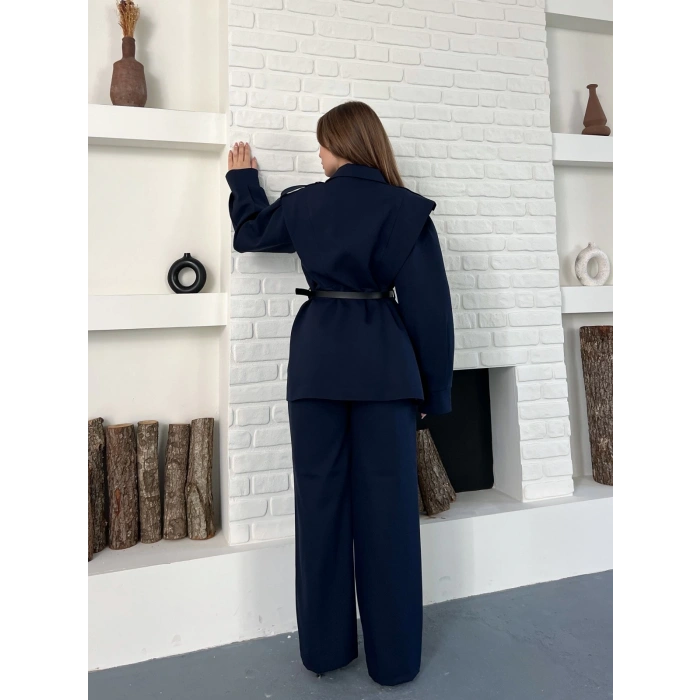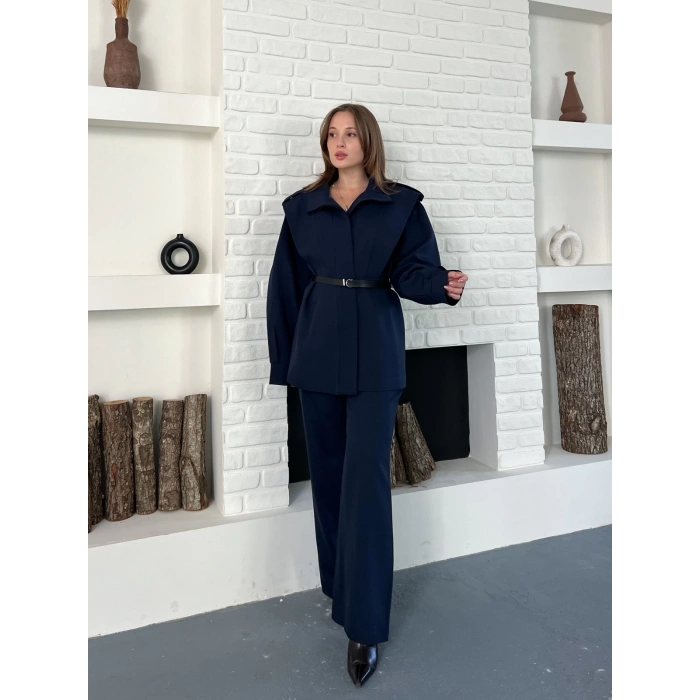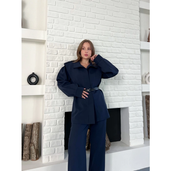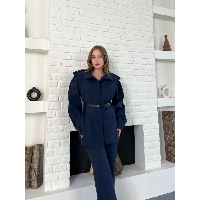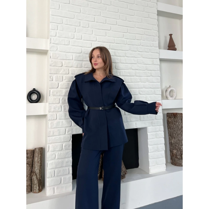 Omuz Vatkalı Kemerli İki Takım Lacivert