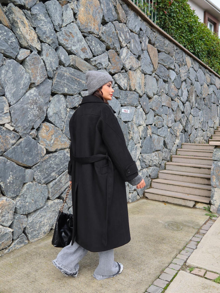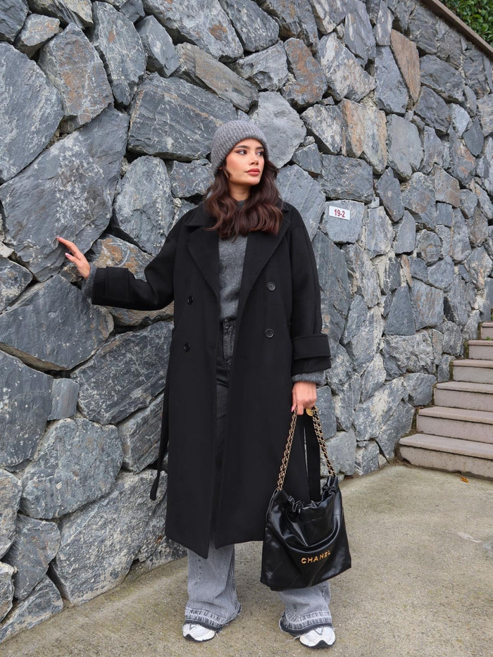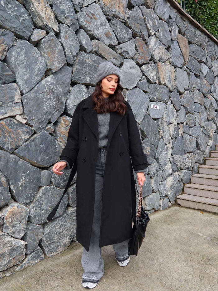 Siyah Yün Karışımlı Premium Blend Kaban