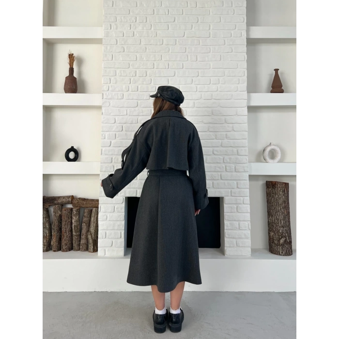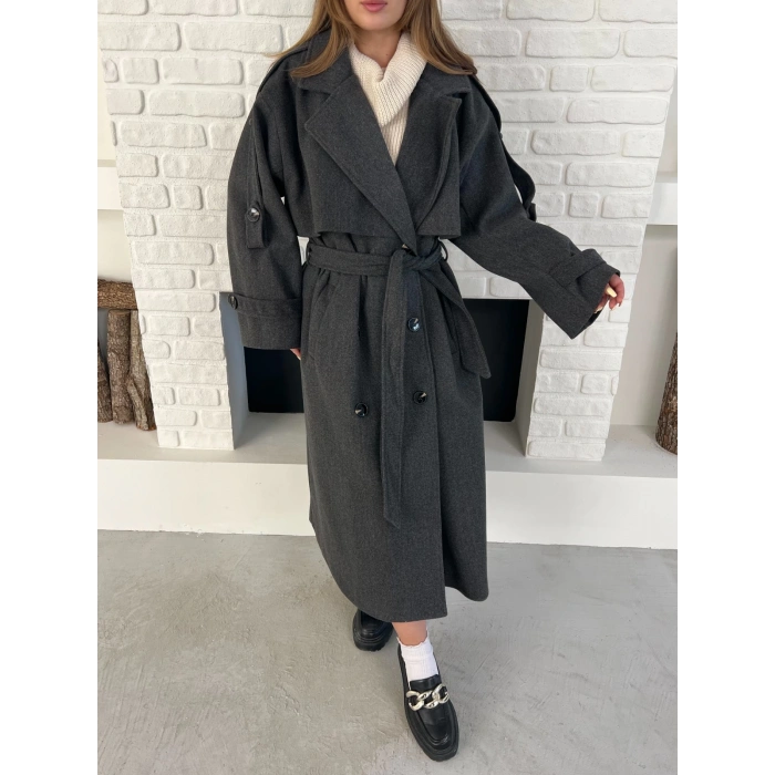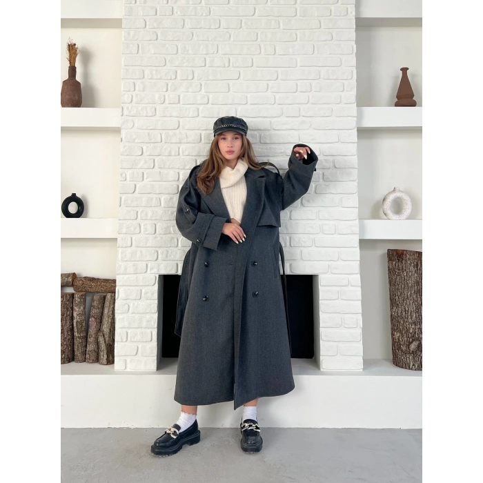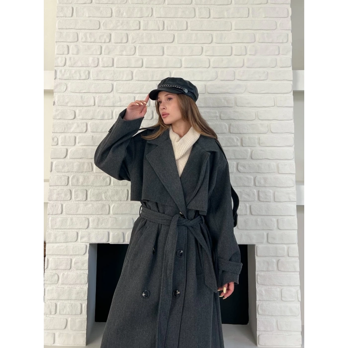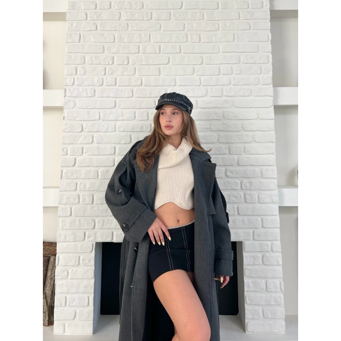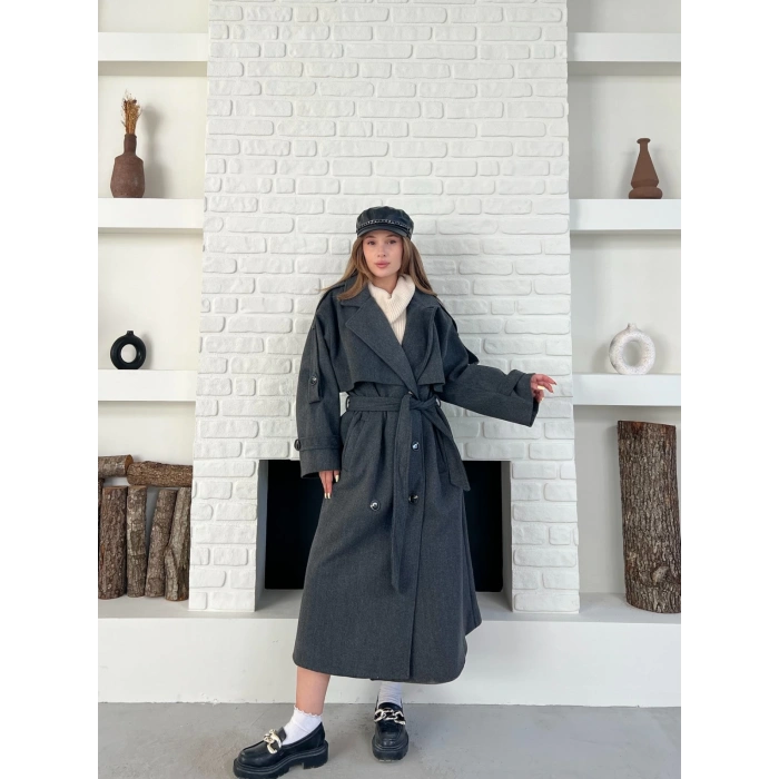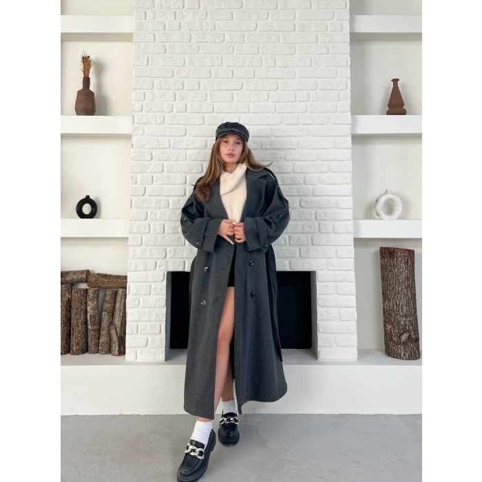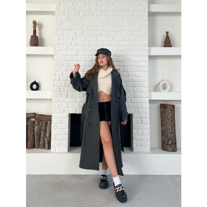 Uzun Boy Kuşak Detaylı Kaban Antrasit